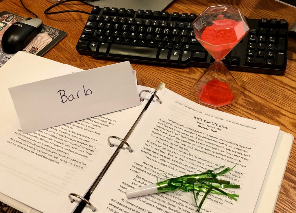 I didn’t respond. My husband wants my time. My projects want my time. Write Your Life Story had to be pretty darn special to take two hours every week for it, plus preparation, and on Friday afternoons, no less. And the other class, Prose Writing Workshop, was truly excellent.