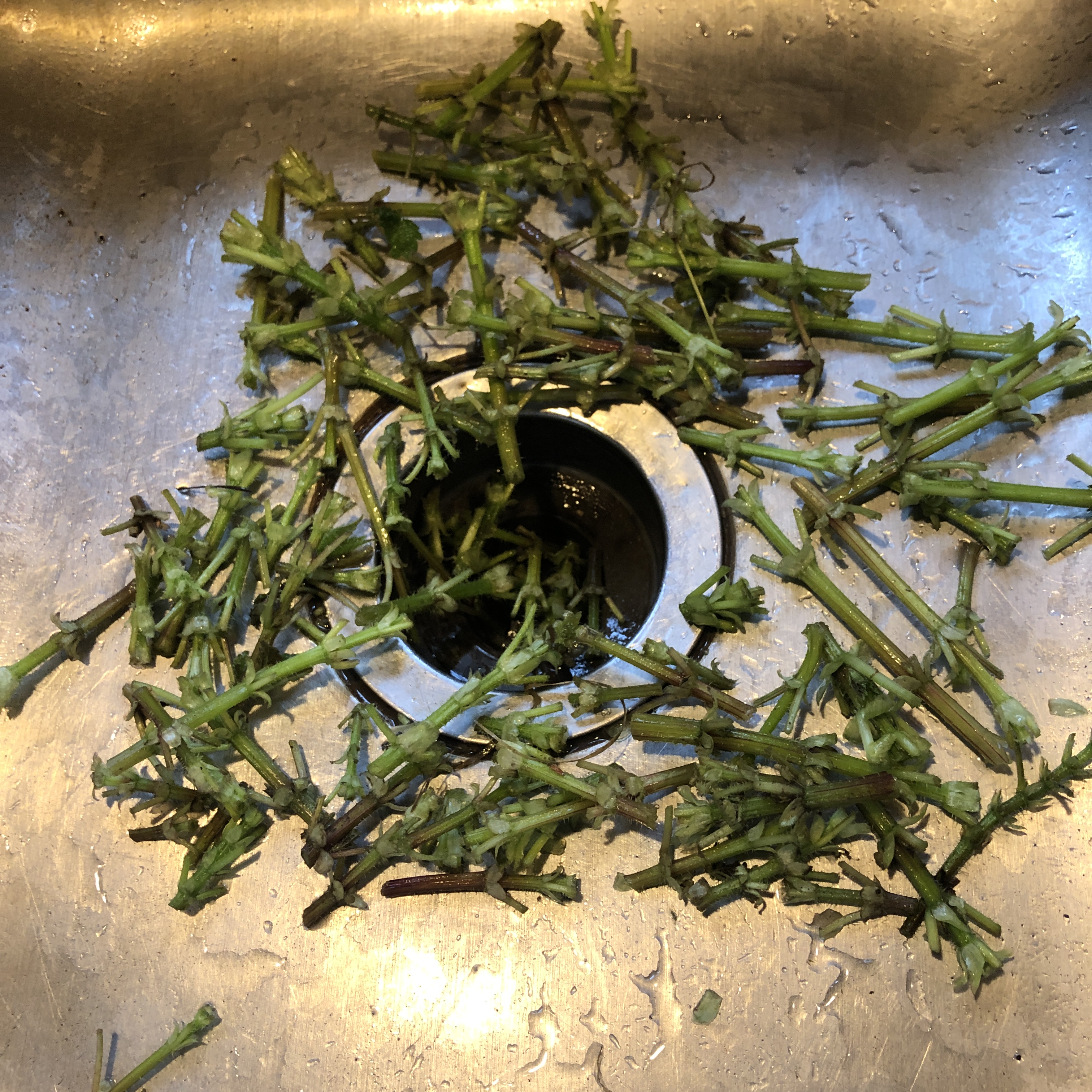 I’ve also steamed it, like spinach, and it tastes—green. Until I add butter, and then it tastes like something green with butter. Maybe asparagus, but with a raspier texture. Not a texture I enjoy, but then maybe I harvested it too late, when it is said to get that way.